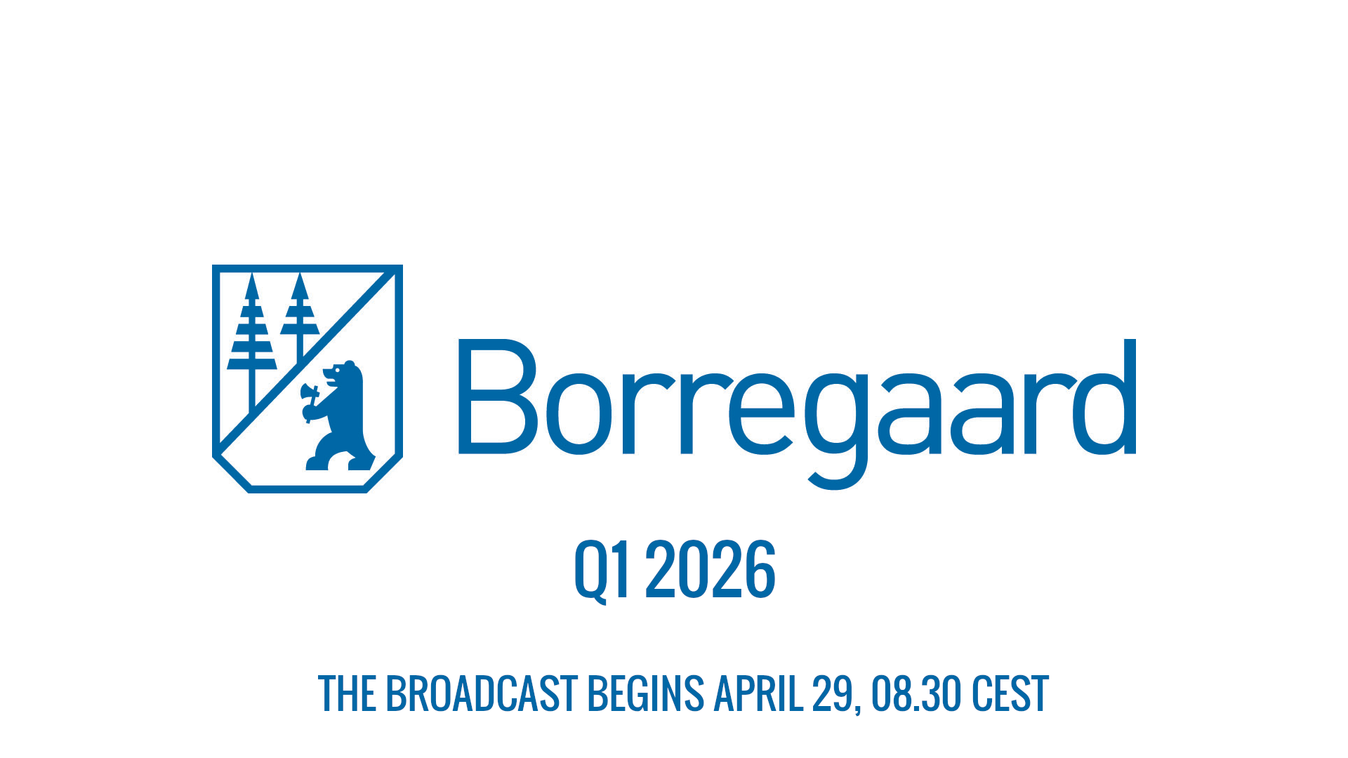 This first quarter presentation is recorded and streamed directly to the internet, including questions from the audience. The recording will be published on Borregaard home page www.borregaard.com at up to three years.